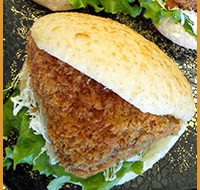 白身魚のフライに自家製ソース、タルタルソース をかけた味間違いなしのサンドパン🐟!